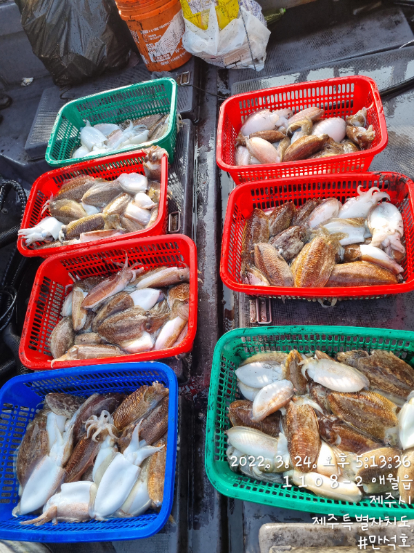 며칠간 몸이 안좋아서 출항을 포기하다가 어제 낚시 처음하시는 초보분들 모시고 출항했으나 짙은 해무로 가시거리 30미터도 안보여 고생은 했지만 오징어는 "룰루랄라" 느나느나 올라와줬습니다. 낚시 처음하시는 아줌마가 5시간동안 87마리 장원 85마리 준장원 평균 60마리 꼴찌 40 여마리 로 마감했습니다. 경험자분들 오셔서 낚싯대 두 대 펼쳤으면 200마리 이상씩은 잡았을 듯 합니다.출조하신 고객님들 수고 많으셨습니다. ☎ 출조 문의 : 010 9704 5114 ■오후 7시 출항 12시 입항 ◆ 선비 : 60,000원 ♤ 장비 대여 : 10,000원 ◇ 채비 대여 : 20,000원 ■출항지 : 애월항  ===== 제주 만석호 예약안내 ======안녕하세요! 만석호 평생을 고향인 제주바다에서 살아온 만석호 김선장입니다. 제주도 유일의 잠수부"머구리" 출신 선장으로 제주 바다는 그림을 그릴 정도로 자부심을 가지고 있습니다.최고의 포인트에서 최고의 손맛을 볼수있도록 최선을 다하겠습니다.※ 만석호에서 고기를 못 잡으면 인간문화재 입니다 ■ 예약문의 : 010-9704-5114 010-3484-8878■ 오시는길 : 제주특별자치도 제주시 애월읍 애월해안로 65 검색하시고 오시면 됩니다 계절별 포인트 상황에 따라 유동적(전화문의)형제 해안로13-1 ■ 제주 만석호 실시간 예약 바로가기 : http://fishingstory.sunsang24.com/■ 계좌안내 : 수협 / 0010-9311-3644 / 고영희